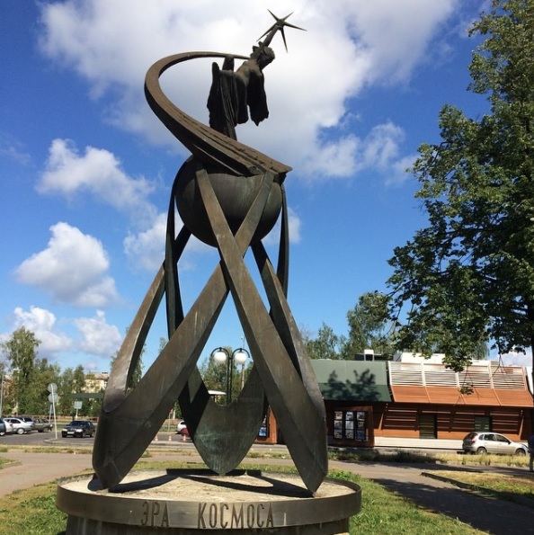 Рыбинск — не самый известный город, связанный с авиацией. Но именно благодаря рыбинским приборостроителям были осуществлены многие космические программы. Бронзовый памятник, открытый здесь в 1978 году, представляет собой три перекрещивающихся орбиты, расположенные на кольце, у вершины которых находится земной шар. Шар венчает скульптура женщины, летящей по орбите и держащей на вытянутой руке космический спутник. Постамент украшает надпись “Эра космоса”.
