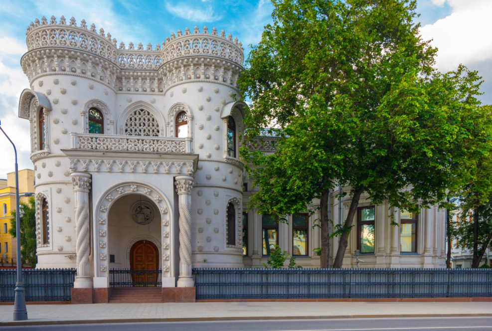 Ряд необычных зданий Москвы дом купца Арсения Морозова пополнил еще в 1899 году. Арсений был представителем знатного рода и миллионером, хотя и не принимал участия в семейном текстильном производстве. Участок на Воздвиженке он получил в подарок от матери и захотел построить здесь собственный дом. Денег у него было много, но вкуса значительно меньше. Проект он заказал архитектору Виктору Мазырину: первый вариант особняка в русском стиле купец отверг, но предложил отправиться за вдохновением в совместное путешествие.