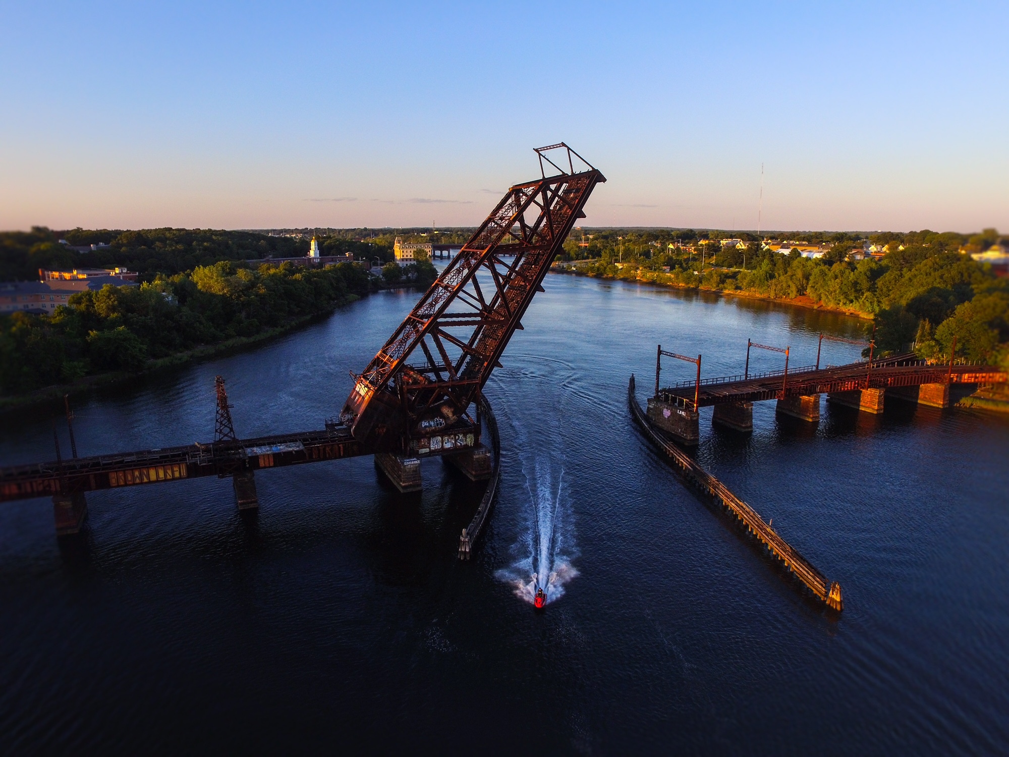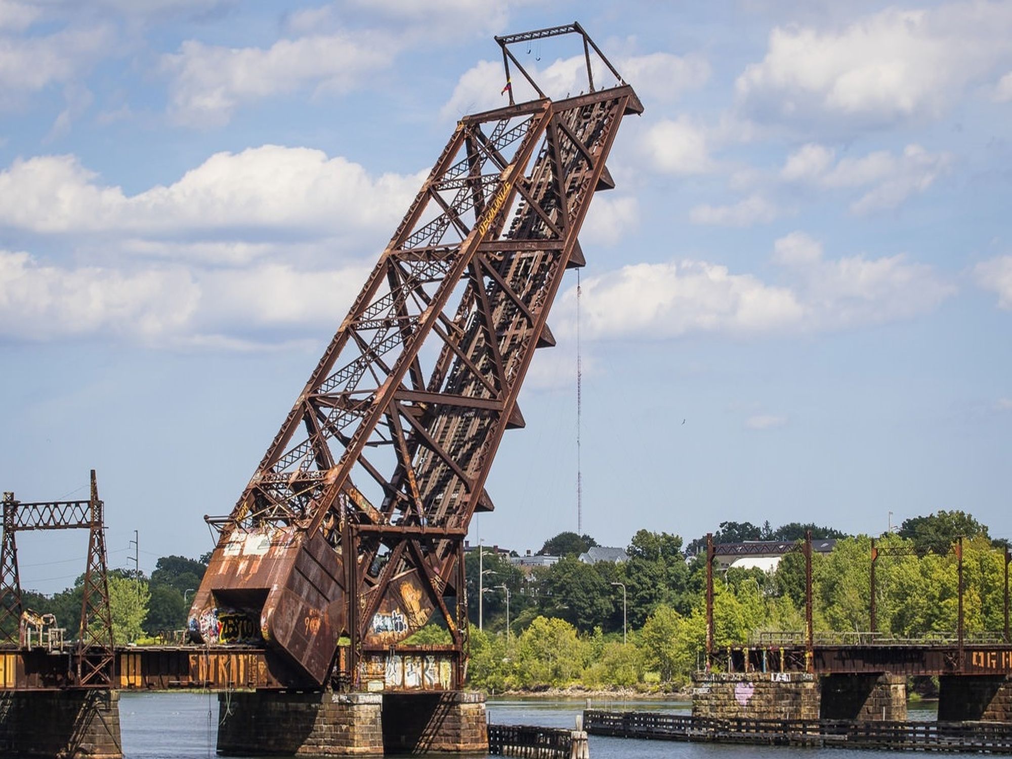 Ржавый железнодорожный мост Crook Point Bascule Bridge, известный также как «торчащий мост», — самое известное сооружение в Провиденсе (США).